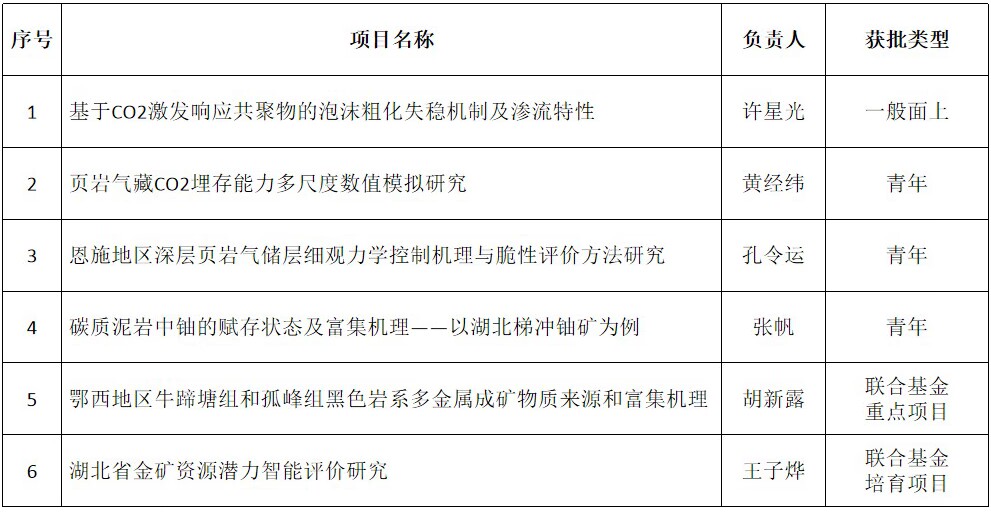 获资助6项。其中许星光教授获批面上项目,黄经纬教授、孔令运教授、张帆副教授获批青年项目,胡新露副教授获批联合基金重点项目,王子烨副教授获批联合基金培育项目。