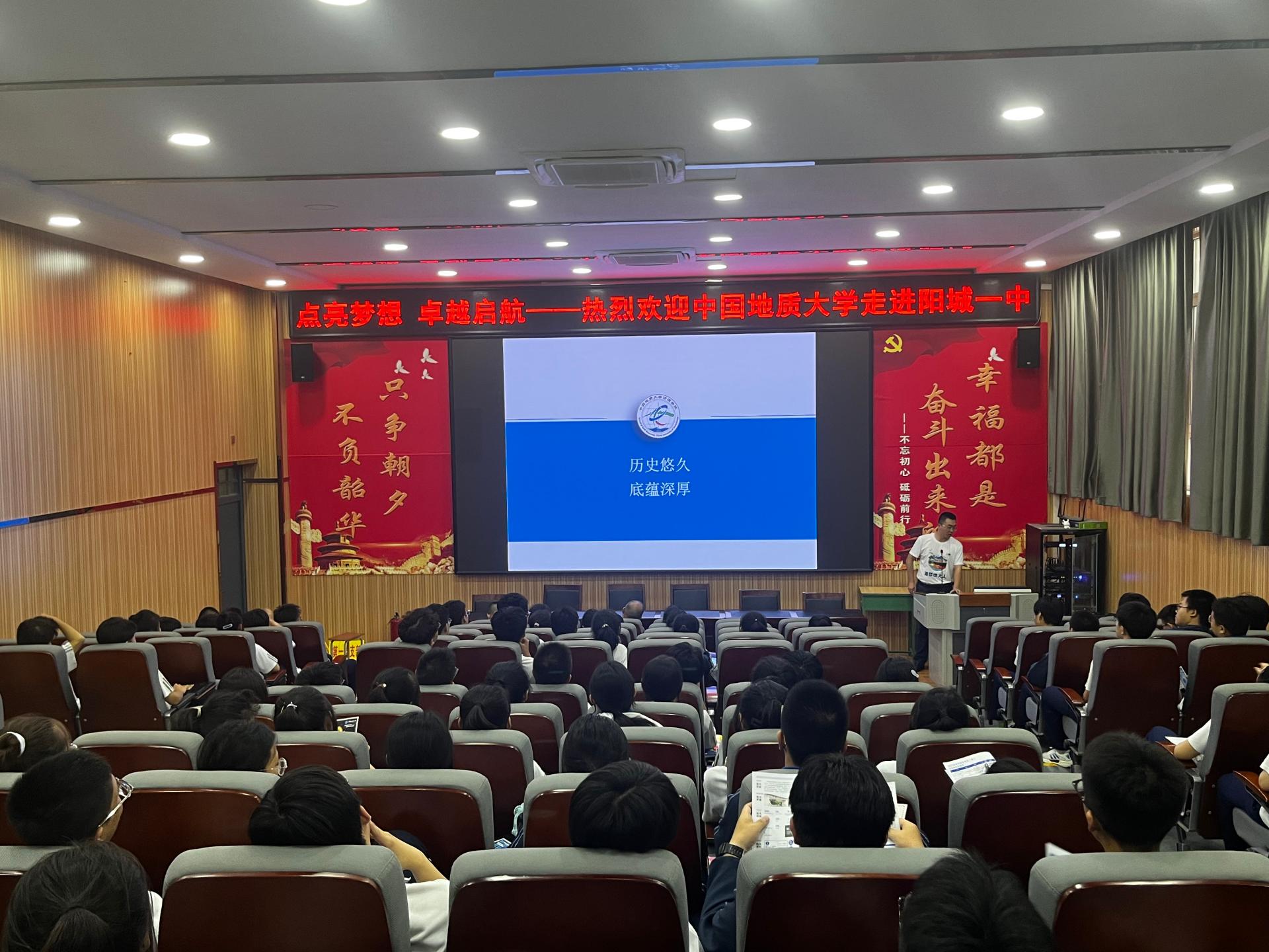 8月18日,我院赴阳城一中讲授大学先修课,祝贺阳城一中郭杨波等5名同学在2023年高考中顺利考入我校,并为阳城一中授予“中国地质大学优质生源基地”。阳城一中校长张吉兵、副校长王伟及高三学子参加讲座。