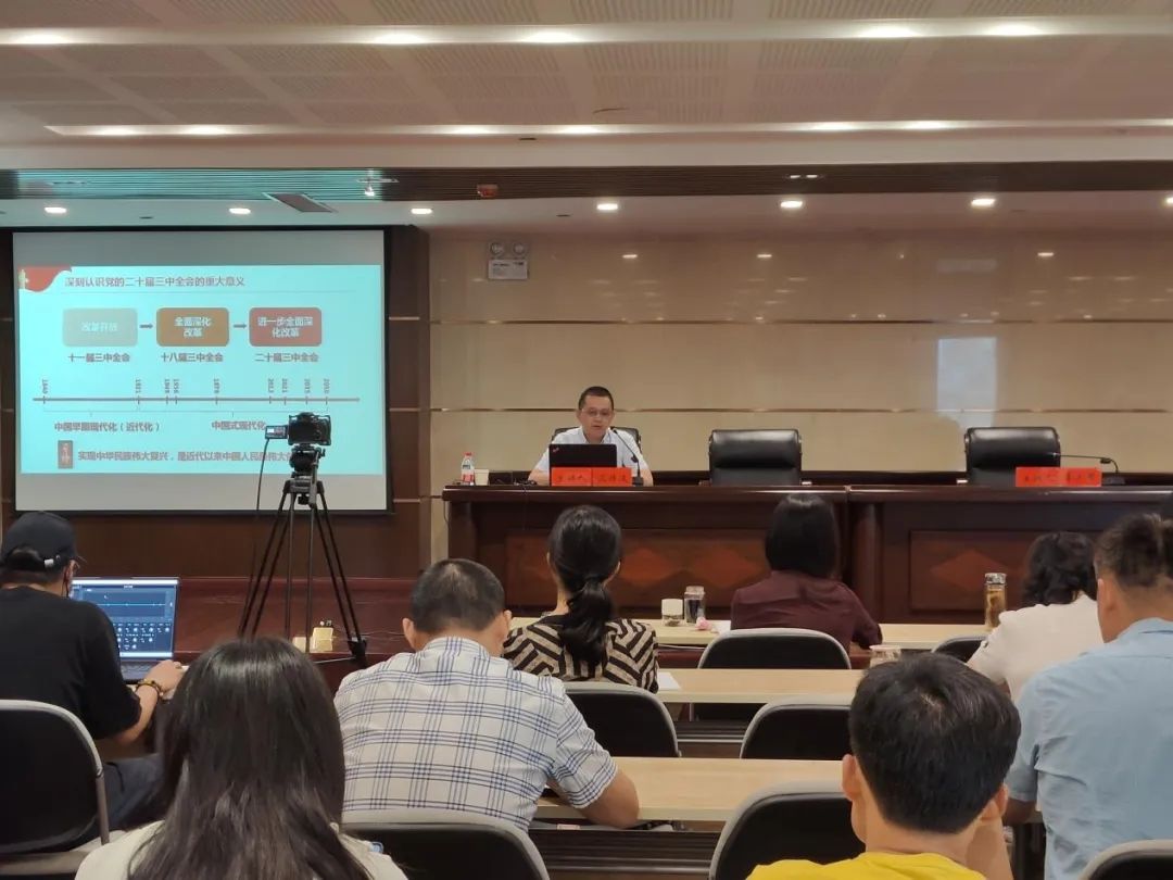 教授、博士生导师沈传波以《进一步全面深化改革 谱写中国式现代化时代新篇——学习贯彻落实党的二十届三中全会精神》为题作宣讲报告。