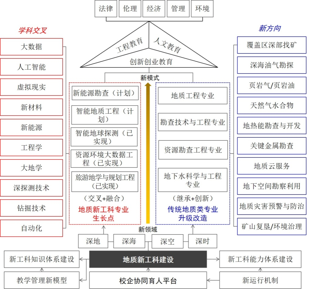 2.扎实推进新工科建设:借鉴国际工程教育的先进理念,结合科技变革、行业转型和国家战略实施对工程人才的现实需求,打造特色鲜明的专业培养方向,创新本专业人才培养机制,完善人才培养体系,突出多元化培养和个性化培养;构建了现代地学观引领的地质类工科“三观五能”人才培养新理念与新模式;强化专业传统工科优势,拓展专业新工科方向,使专业结构更合理化、新型化,基于新能源英才班和地学大数据英才班的建设基础,申请资源环境大数据工程、碳储科学与工程等新工科专业。