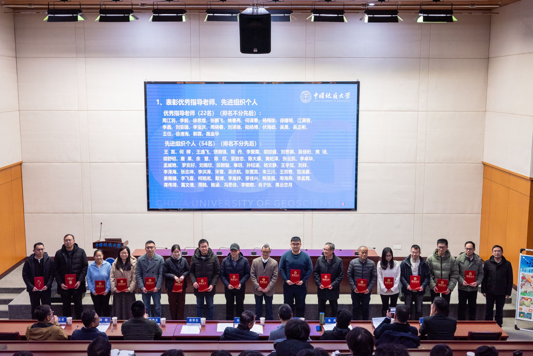 党委副书记谭文伦宣读《关于表彰第十四期“寻找李四光·卓越地质师培育工程”挑战营竞赛优秀团队及个人优秀指导老师、优秀志愿者、先进组织个人的决定》。经组委会评审,本期“培育工程”共评选出:徐浩淋等35个获奖团队和获奖个人,周江羽等21名优秀指导老师,李爱霞等30名优秀志愿者,王言等54名先进组织个人。