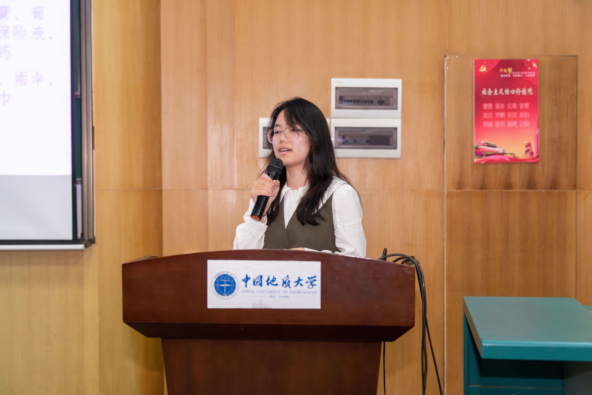 余慧同学分享《周口店、秭归地质实习》实习心得。她以“亦学亦游拓山海,寓教于乐观美景”为题总结实习收获,分享了露头观测、报告编写、实习考核等方面的经验,希望学弟学妹在游历山水中学以致用,在培育地质思维中知行合一。