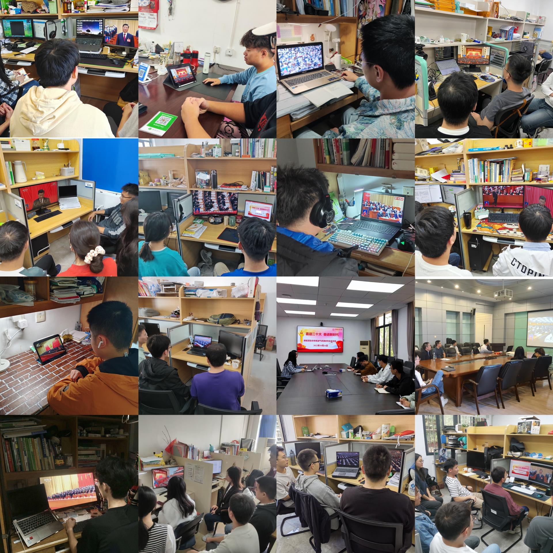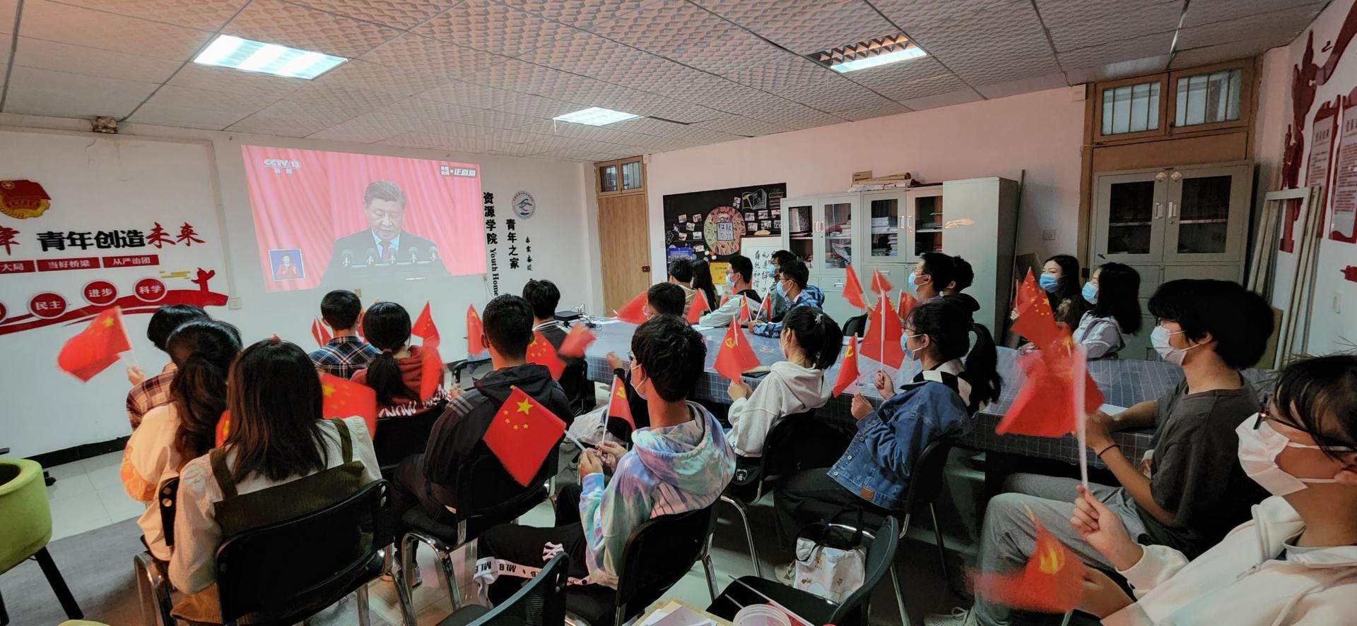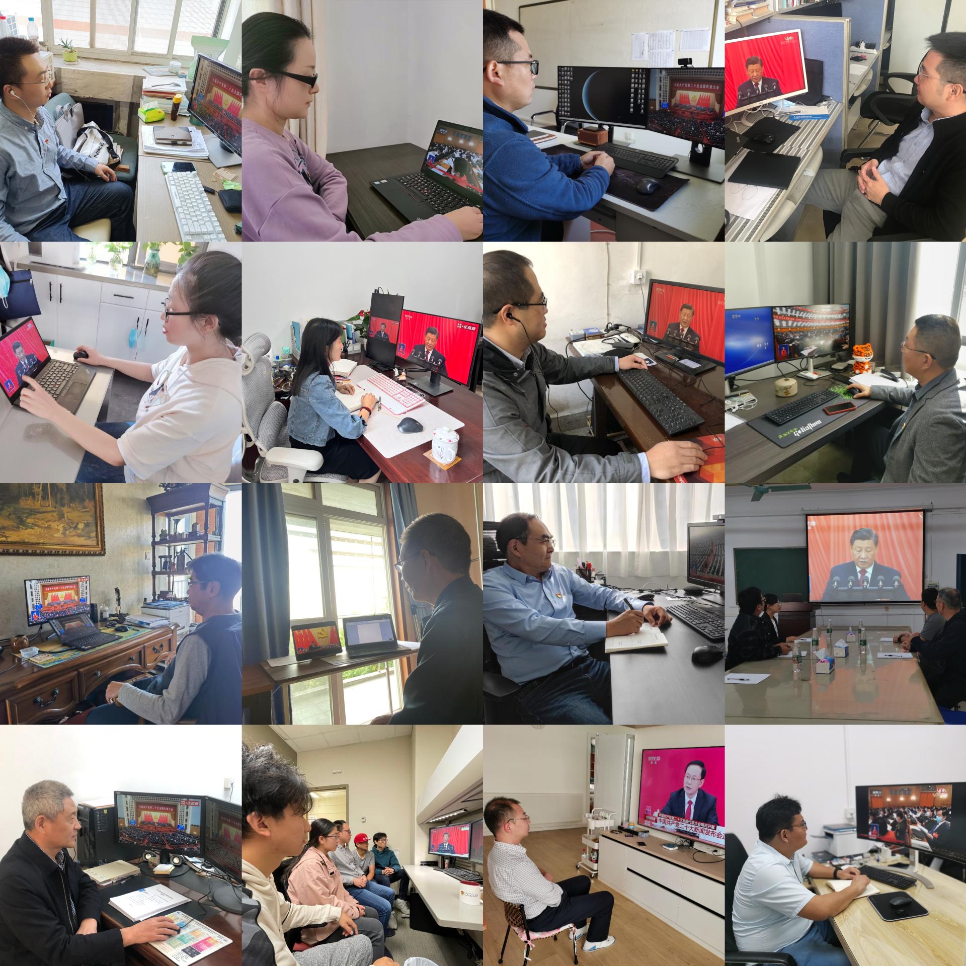 201会议室、教三楼208和56#青年之家设立集中收听收看会场,组织学院党政领导班子,各三级单位党政班子成员,学生党支部书记,学生团支部书记,党团学学生组织成员,教师和学生代表集中收听收看大会盛况;同时,各师生党支部、学生团支部,依托系所属会议室、实验室、工作间、宿舍等组织全体师生小范围集中或自行收听收看大会。