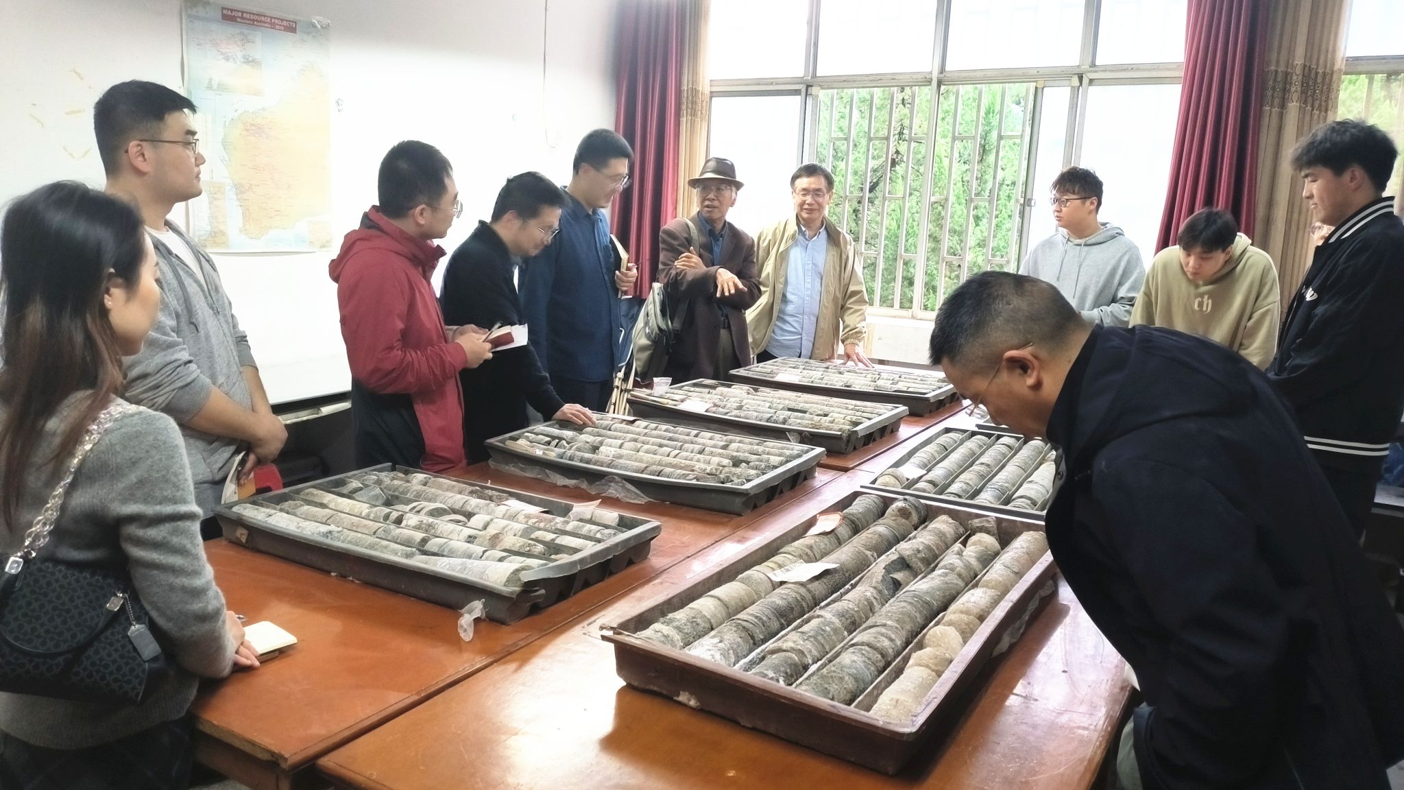 石油地质系含油气盆地沉积学课程组针对新采购的盐湖背景下多旋回泥岩-膏盐岩岩心,开展现场教学。杨香华教授主持活动。学校教学督导马立祥教授应邀参加。
