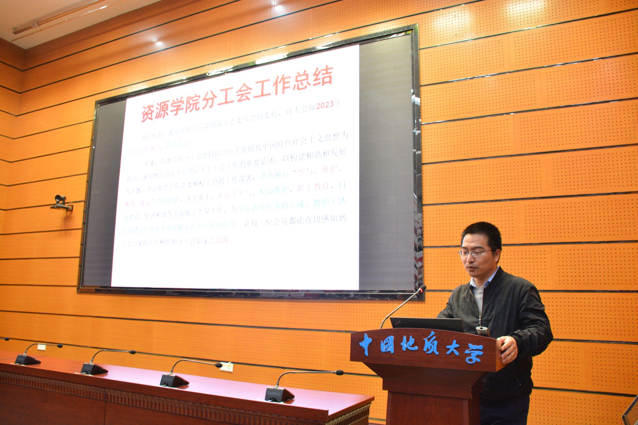 分工会主席平宏伟作学院分工会2023年度工作报告。
