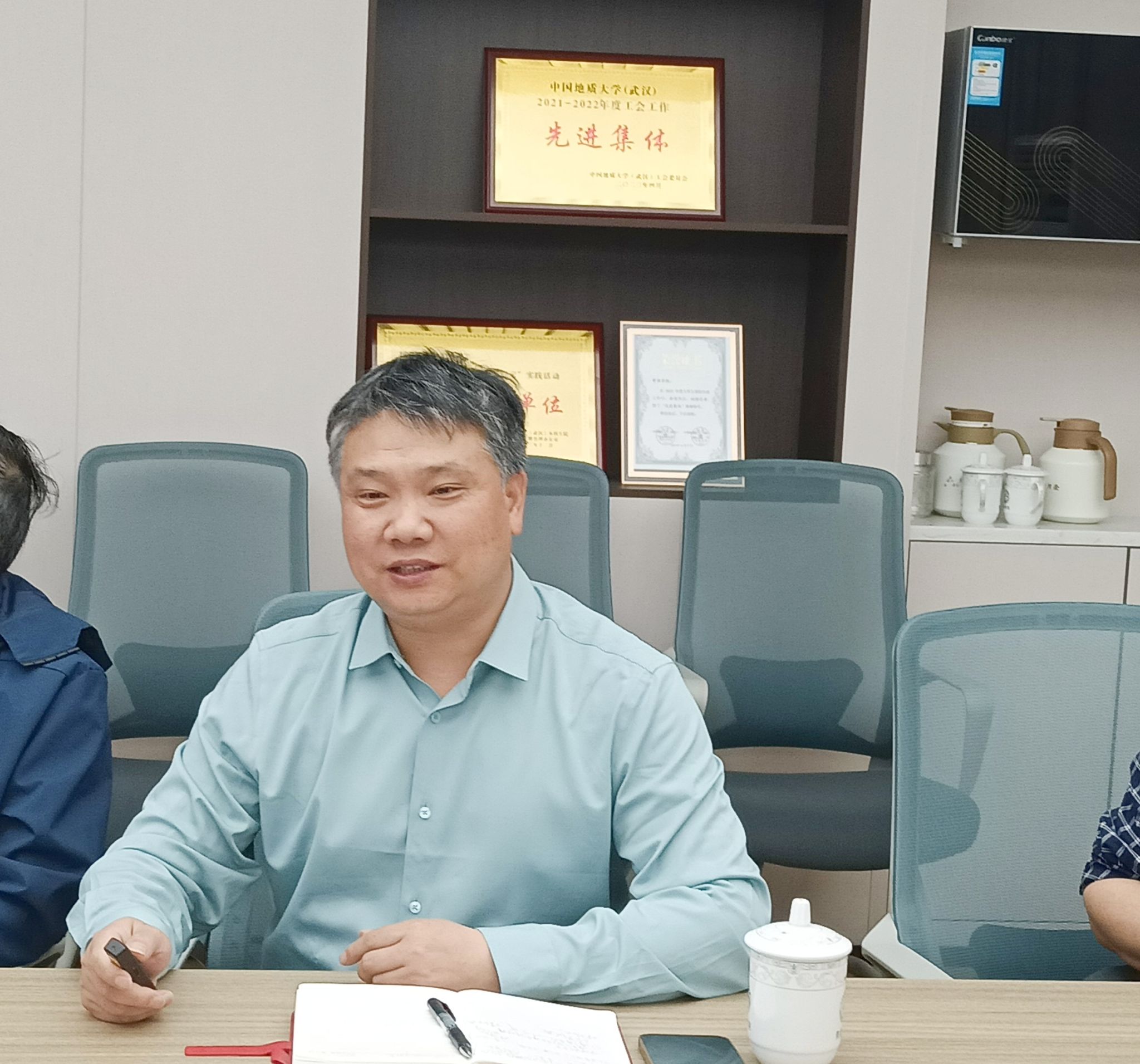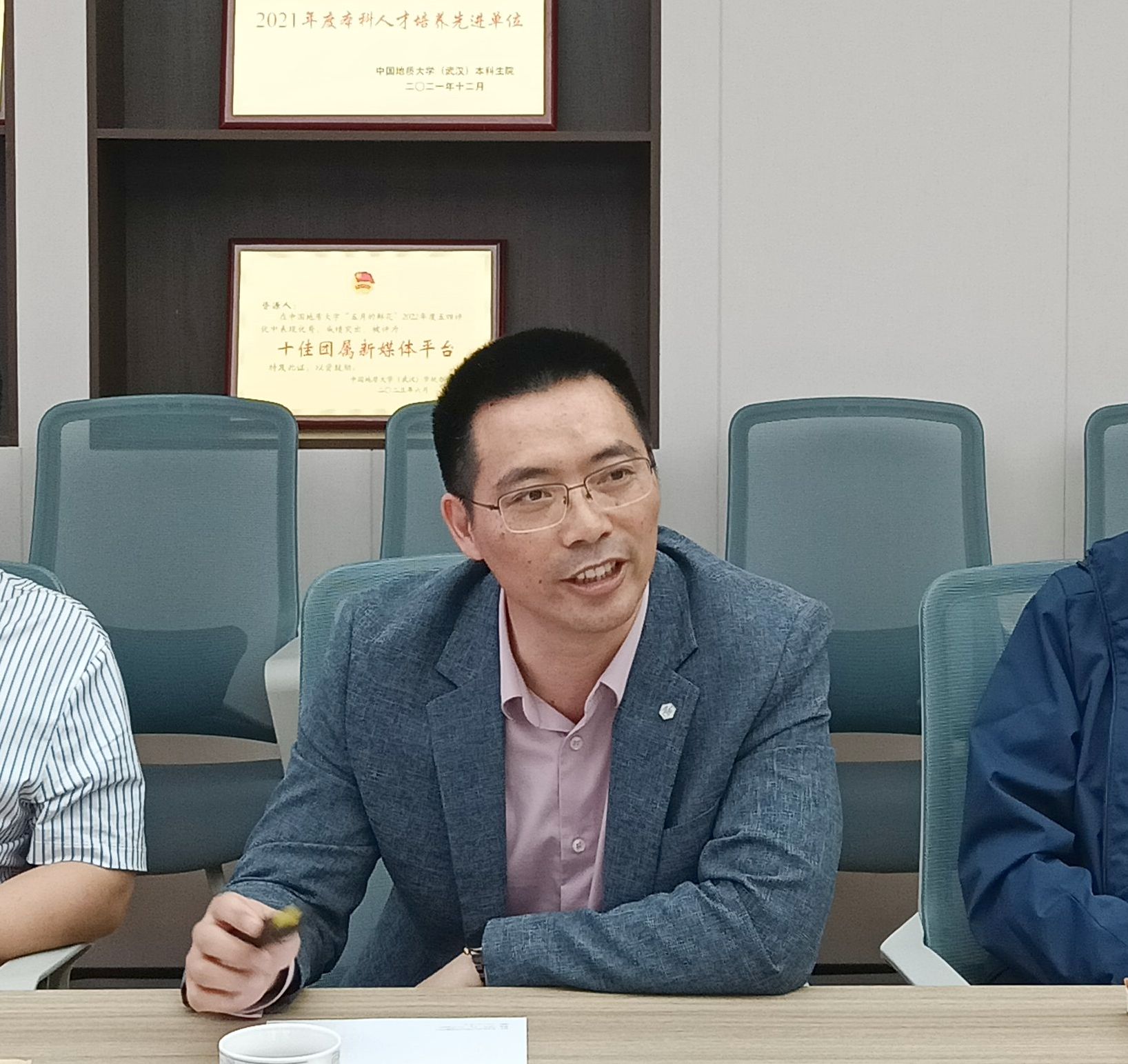 院长严德天,新能源学院院长、构造与油气资源教育部重点实验室主任蒋恕,海洋学院副院长姜涛及双方相关单位负责人参加座谈会。蒋恕主持会议。