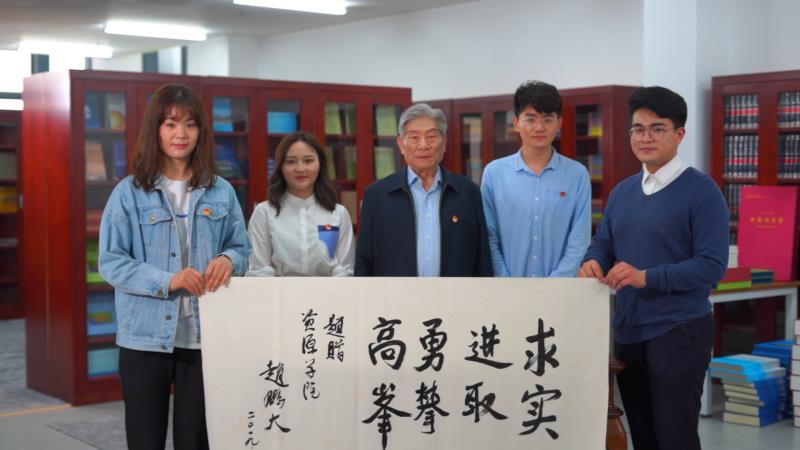 2019年五四青年节前夕,我院学子有幸采访赵鹏大院士,采访毕,邀请赵院士为免费看a片 题词。赵院士即兴挥毫“求实进取 勇攀高峰”。