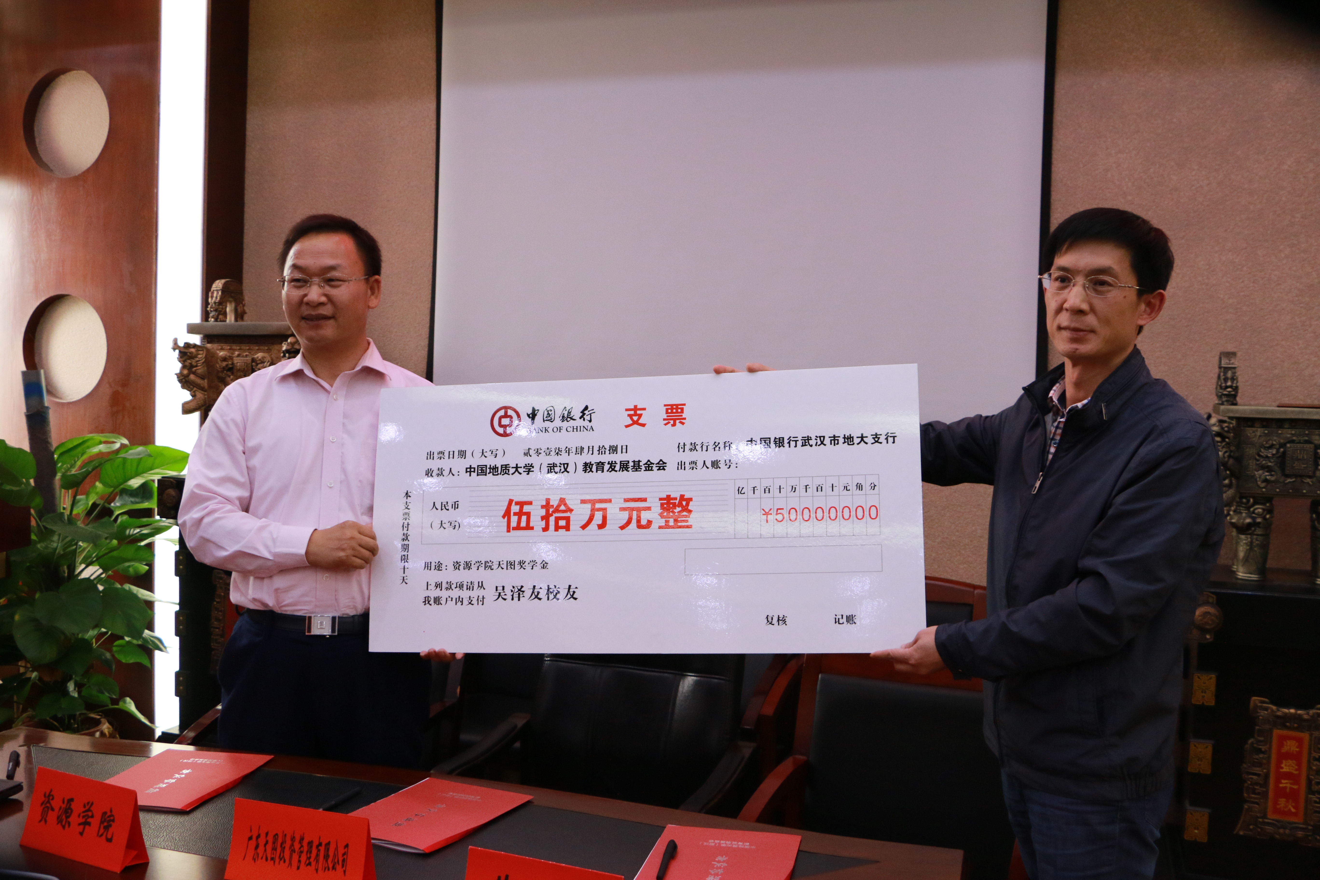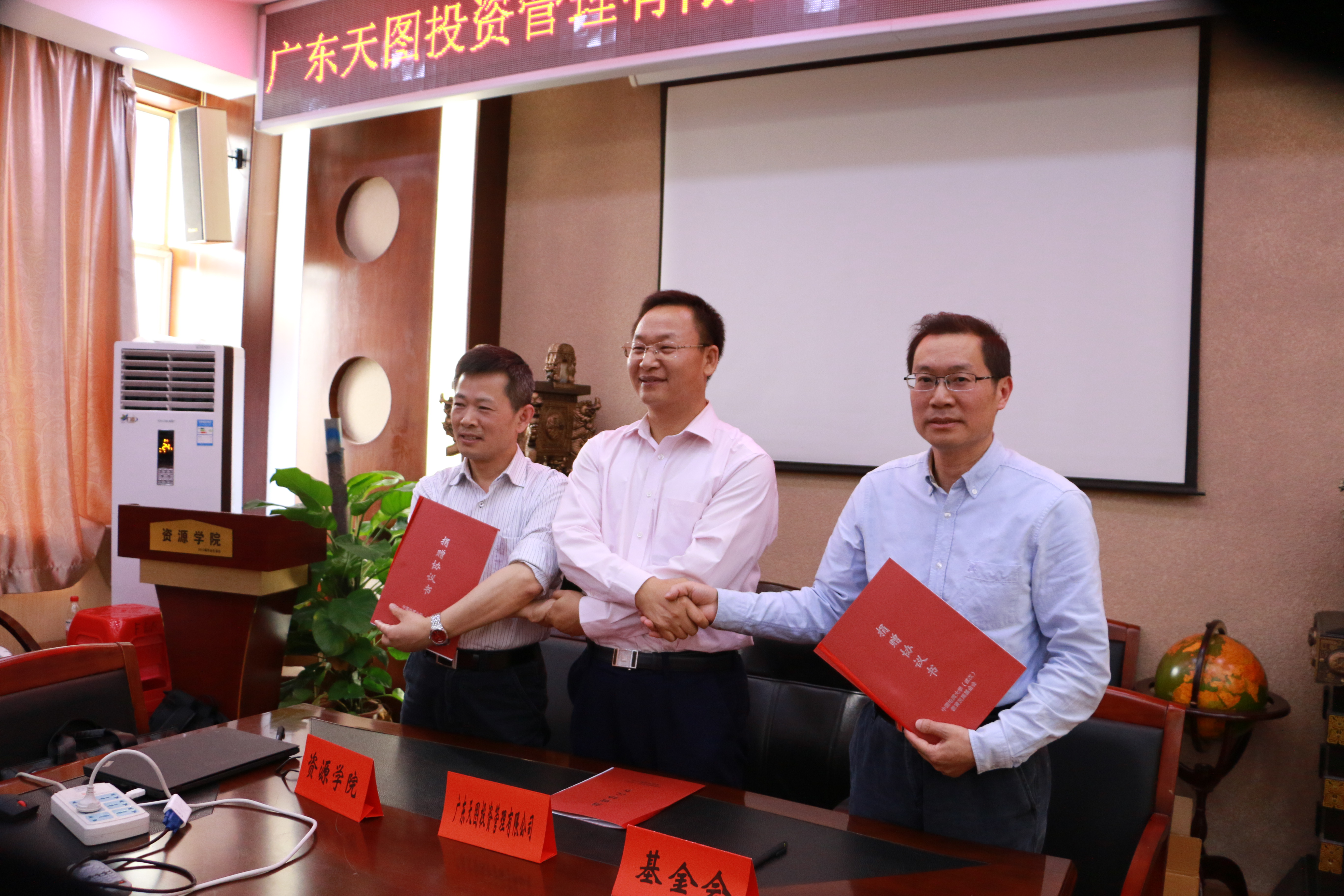 1994届校友、广东天图投资管理有限公司董事长吴泽友向我校捐赠50万元,设立“天图奖学金”。副校长万清祥、校友会基金会秘书长徐岩、副秘书长李门楼、免费看a片
