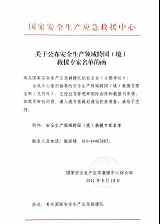 肖明国入选国家安全生产领域跨国(境)救援专家名单