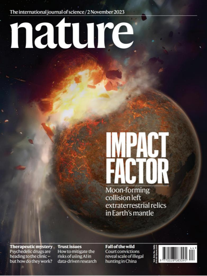 2016届校友袁迁以第一作者在《Nature》发表封面论文。该研究由加州理工大学、亚利桑那州立大学和中科院上海天文等机构的学者组成的跨学科国际研究团队合作,研究指出地幔深部巨大的异常体可能是45亿年月球形成大碰撞的遗迹。此项研究为理解地球内部结构、长期演化、地球甚至内太阳系的形成过程提供了重要的新思想。相关研究结果以“Moon-forming impactor as a source of Earth’s basal mantle anomalies”为题于2023年11月2日发表在国际学术期刊《自然》(Nature)上。