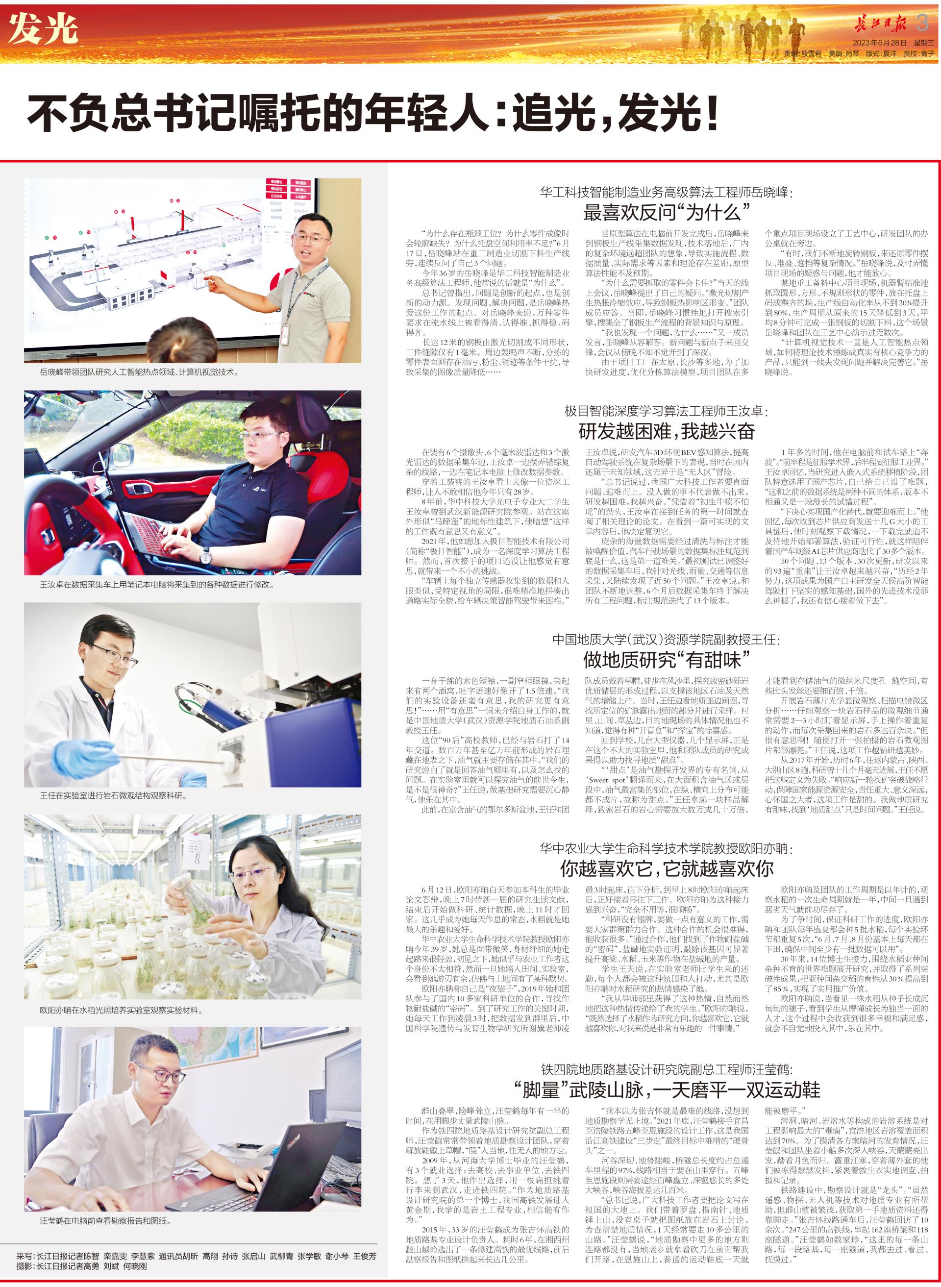 一年以来,奋战在科学研究和技术研发工作一线的武汉年轻人牢记总书记的重要嘱托,踔厉奋发、奋勇争先。年轻的力量在科研征途上,正在追光,发光!
